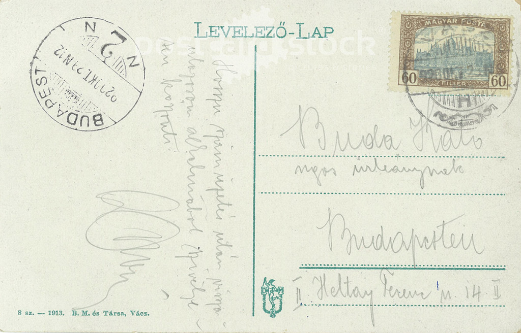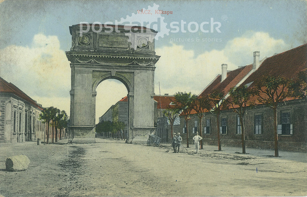 1920 - Kőkapu, Vác. Published by B. M. and Co.. Original paper image. Colored photo, old postcard. (2792840)