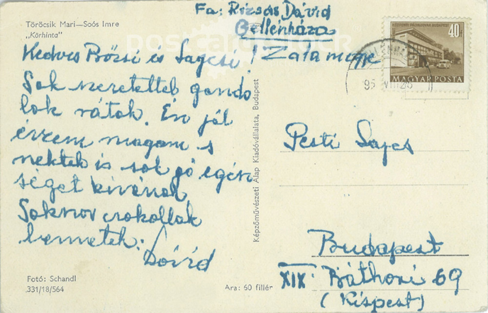 1955 - Mari Törőcsik and Imre Soós in the movie Körhinta (The Carousel). Photo sheet, postcard. (2791015)