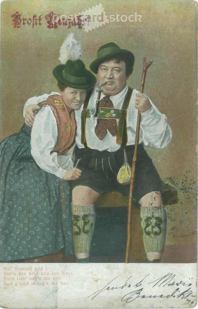 1904 - Merry New Year’s greetings. Colored photo sheet, greeting card. (2791481)