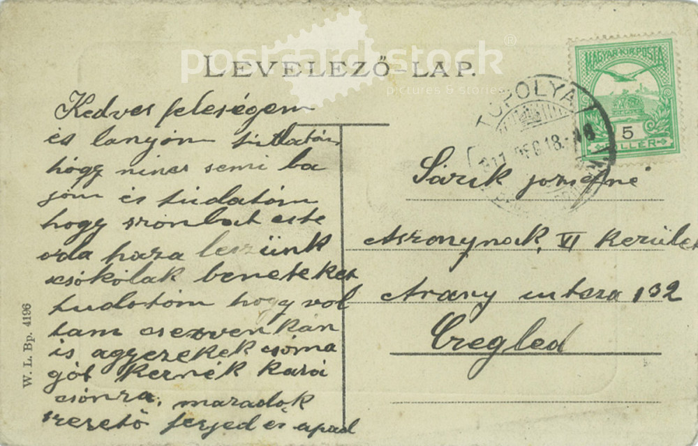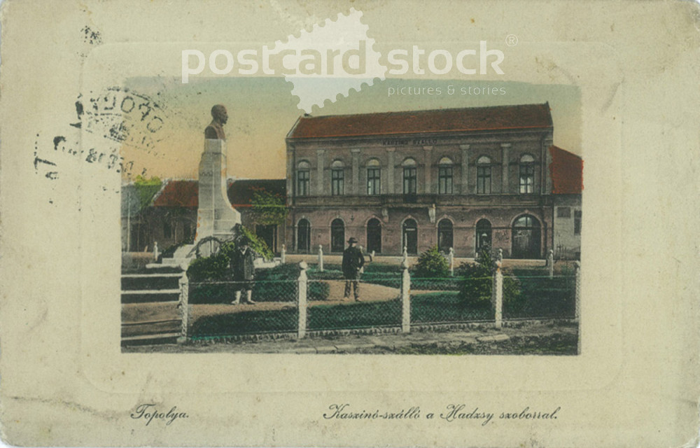 1911 - Topolya. Casino hostel with the statue of Hajj. Original paper image. Postcard, colored photo sheet. (2791999)