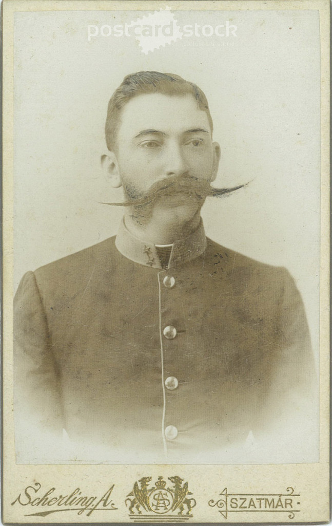 Circa 1900 - Portrait photo of a young officer. The photo was taken in Antal Scherling’s photo studio in Satu Mare. Original Cabinet card / CDV photo / hardback photo. (2793836)