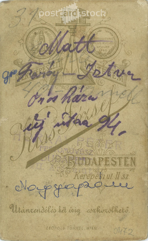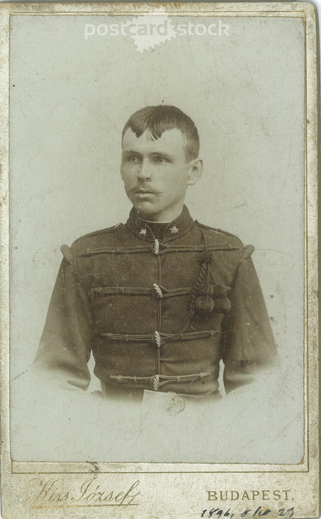 1896 - István Franóy, photo of a young soldier, Orosháza. The photo was taken in the photo studio of József Kiss, Budapest. Original Cabinet card / CDV photo / hardback photo. (2793843)