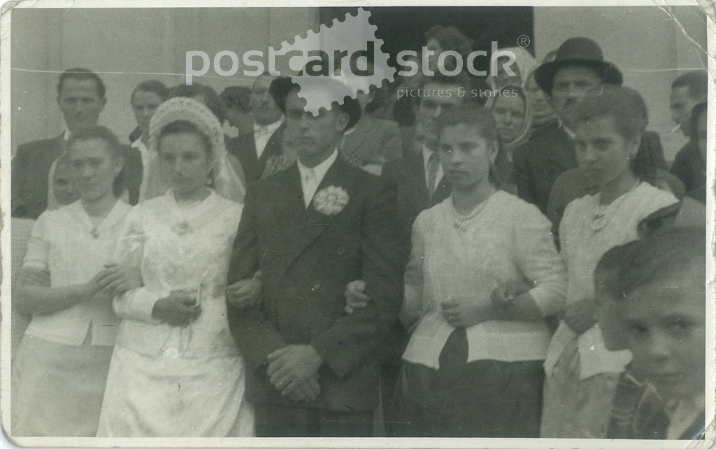 Wedding group photo. The people in the photo and the photographer are unknown. Original old photo. Black and white photo, original paper photo. (2793852)