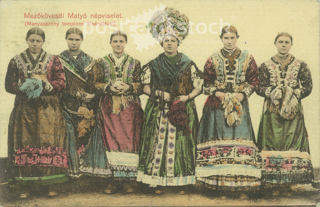 1911 - Mezőkövesdi Matyó national costume. The identity of the people in the picture is unknown. Published by Balázs Ferencz. Colored photo. Old postcard. (2793865)