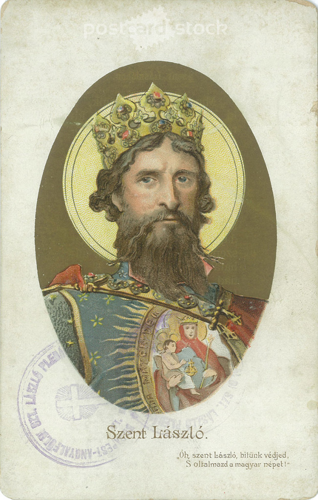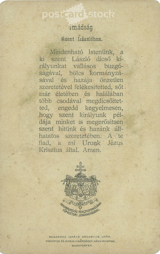 Lithograph of Saint Ladislaus. Prayer to Saint Ladislaus. The artist of the picture is unknown. Published by Werbőczy Printing House, Budapest. Colored lithograph, commemorative sheet. (2793871)