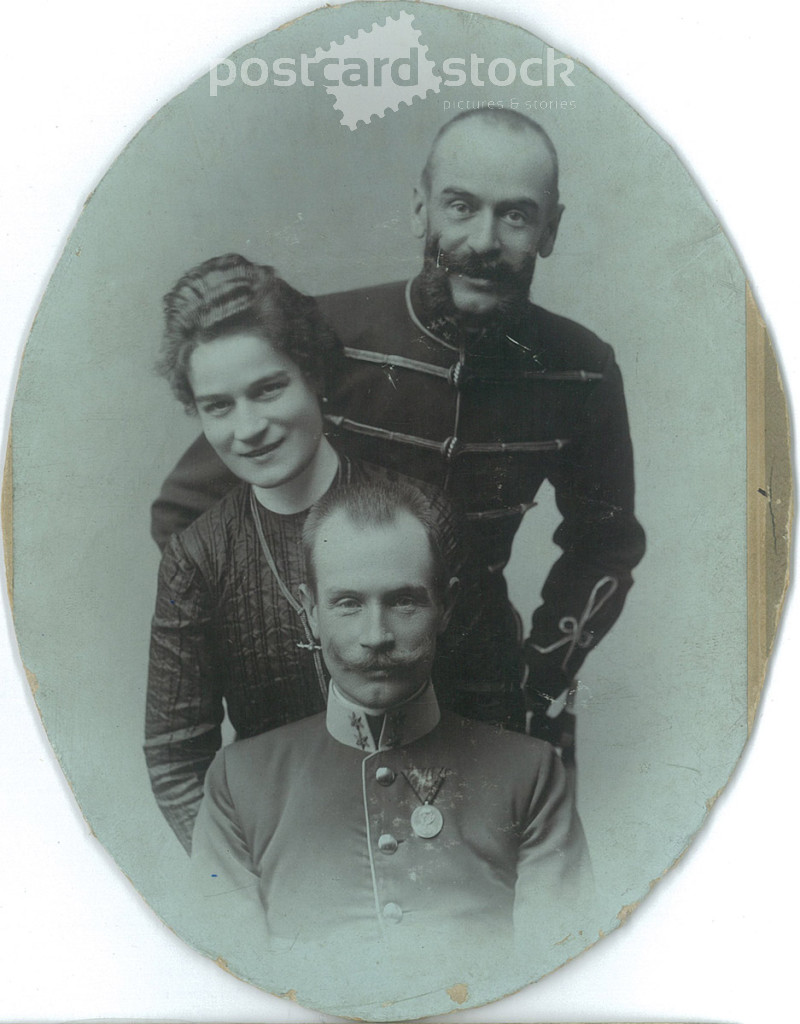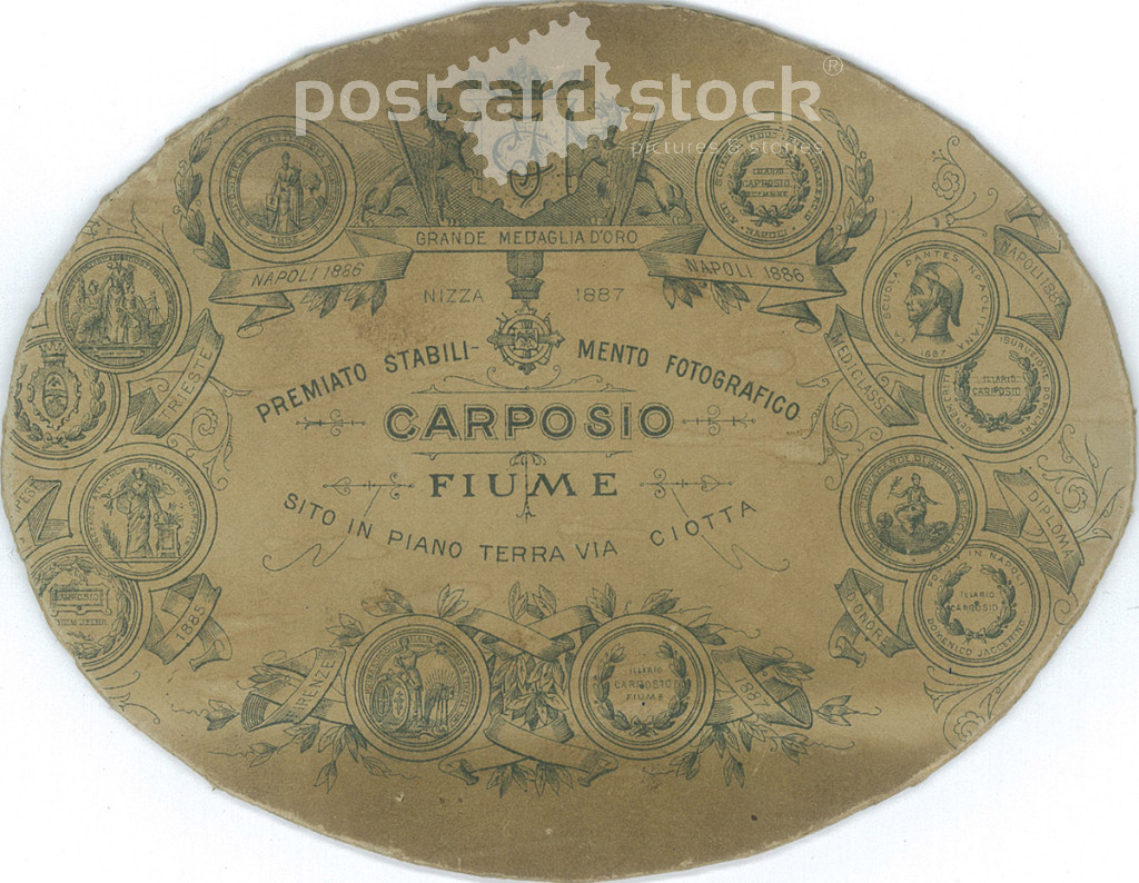 Circa 1900 - Family group photo. The identity of the people in the photo is unknown. The photo was taken in Carposio’s photo studio in Rijeka. Old photo, cropped. Original Cabinet card / CDV photo / hardback photo. (2793872)