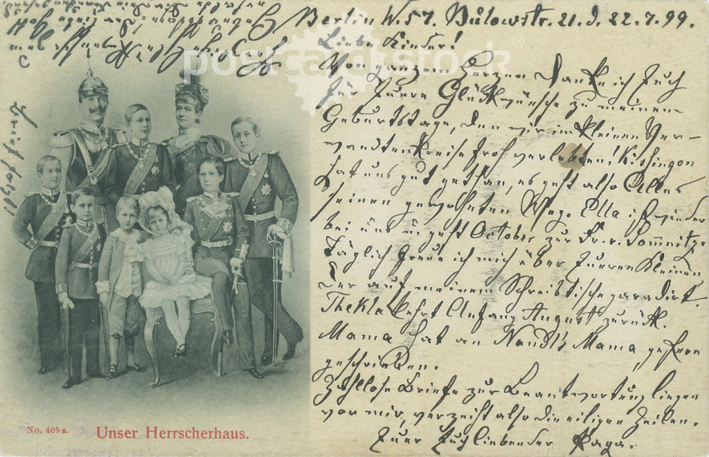 1899 - Emperor William II and his family. Emperor William of Prussia, Empress Augusta Victoria and the children. Original old photo. Black and white photo card, old postcard. (2793880)