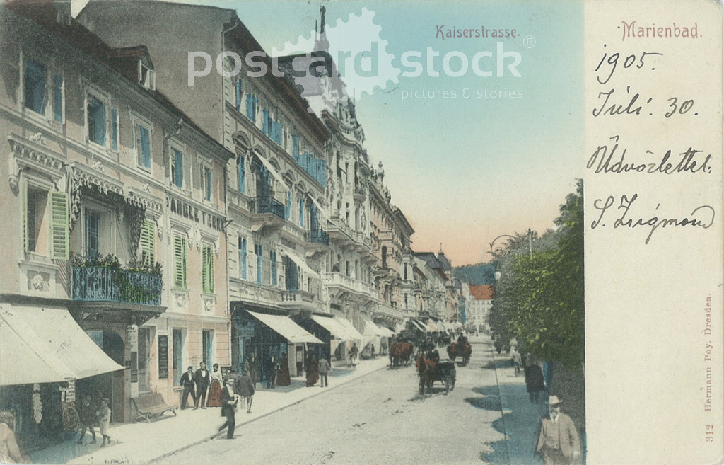 1905 - Kaiserstrasse, Marienbad. Original old photo. Colored photo, old postcard. (2793882)
