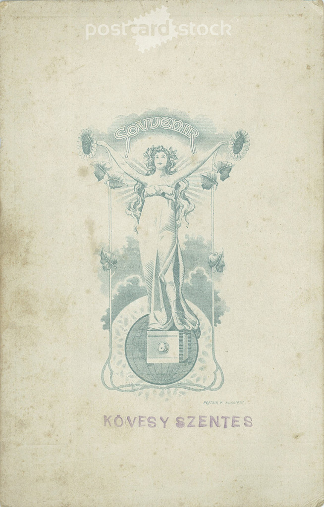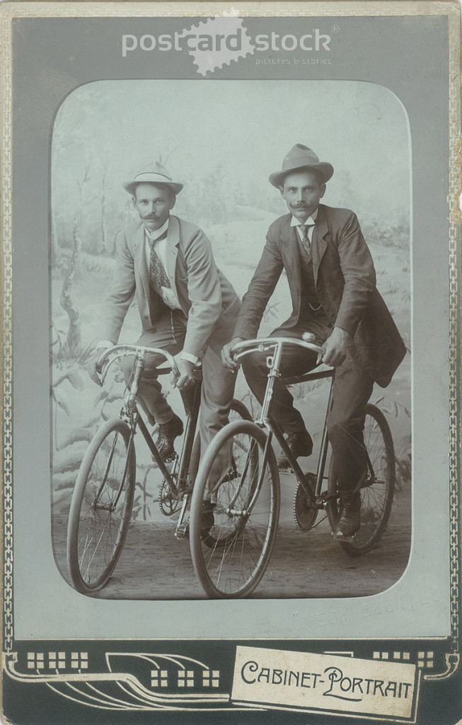 Early 1900s. A pair of siblings cycling in Szentes. The persons in the picture are unknown. The photo is the work of the Kövesy studio. Old photo. Original Cabinet card / CDV photo / hardback photo. (2793885)
