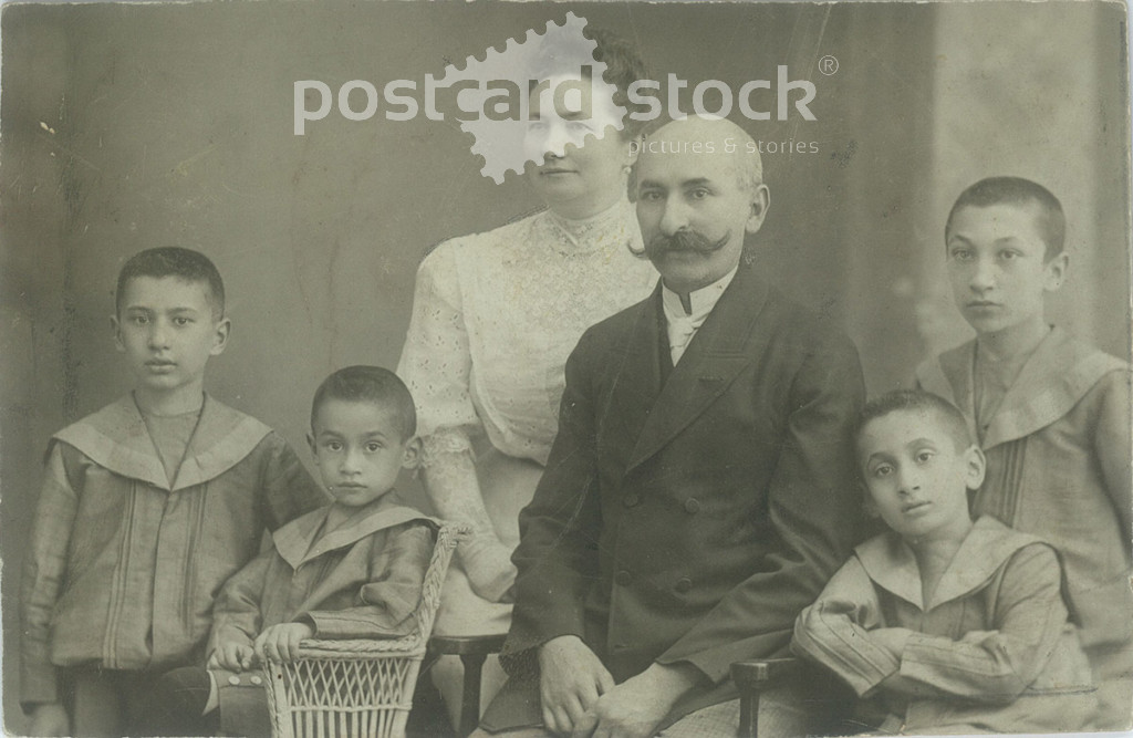 Early 1900s. Studio photo of Béla Deutsch and his family. The photographer is unknown. Old photo. Original Cabinet card / CDV photo / hardback photo. (2793897)