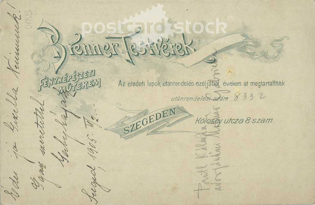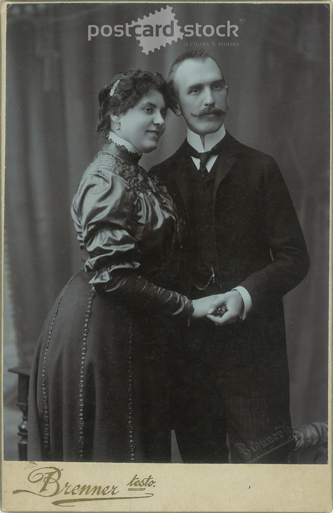 1905 - Studio photo of Kálmán Pantl and Gizella Molnár. The photo was taken in the Brenner Brothers' photo studio in Szeged. Old photo. Original Cabinet card / CDV photo / hardback photo. (2793899)